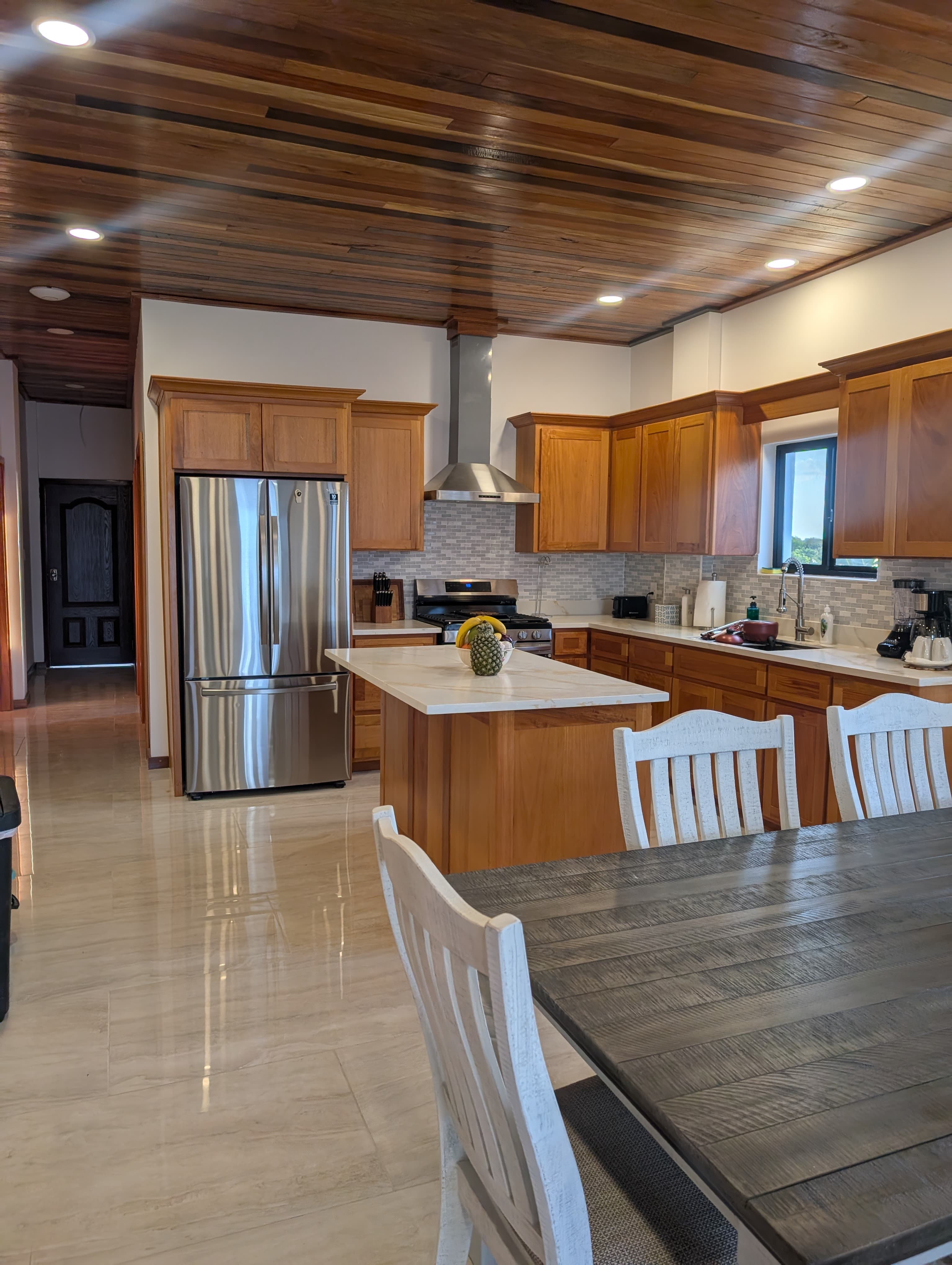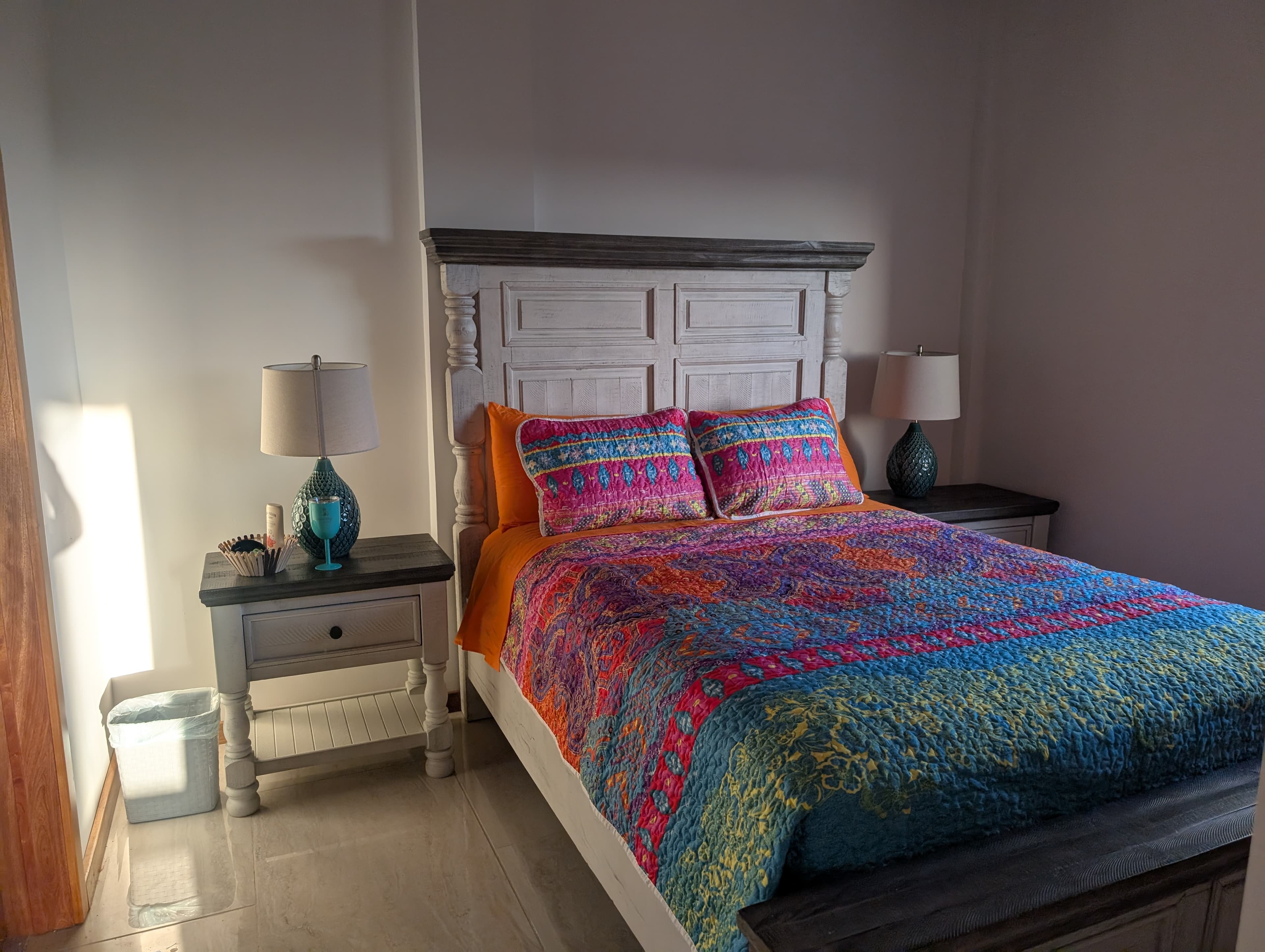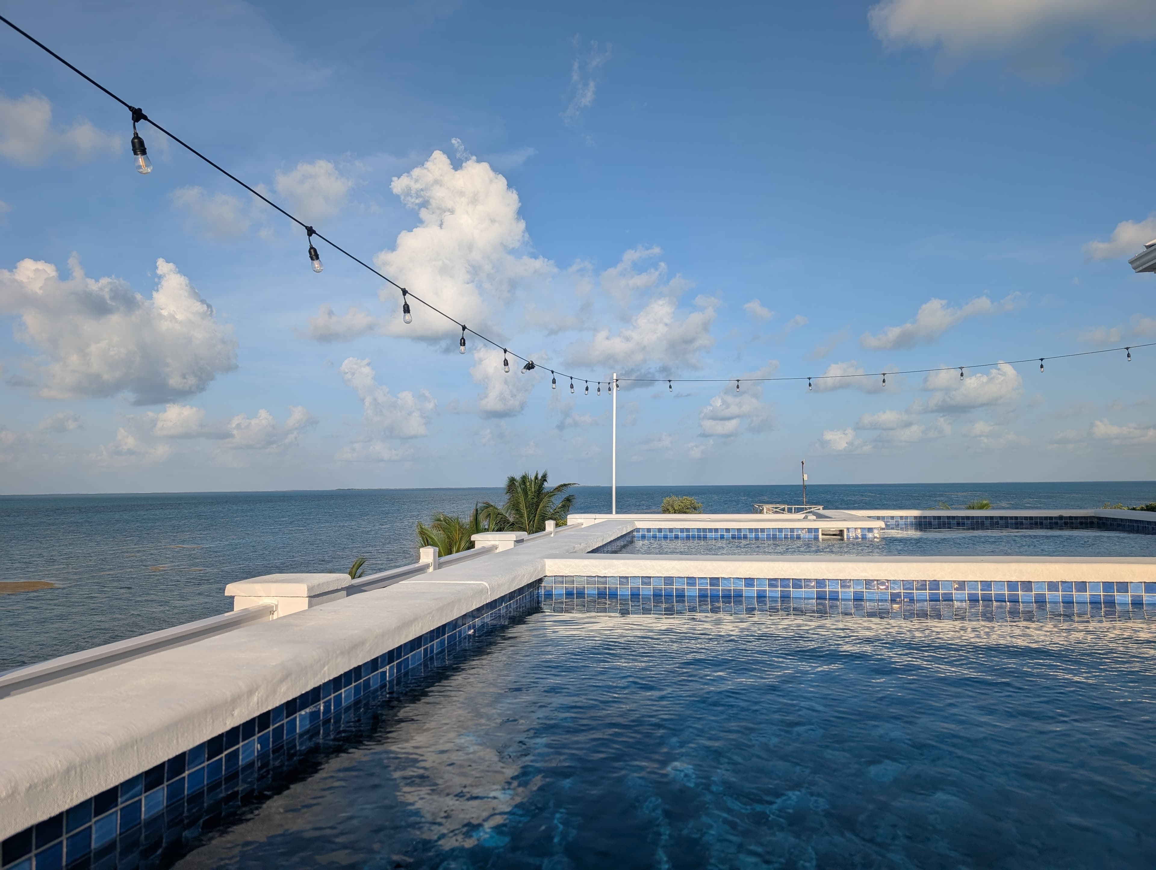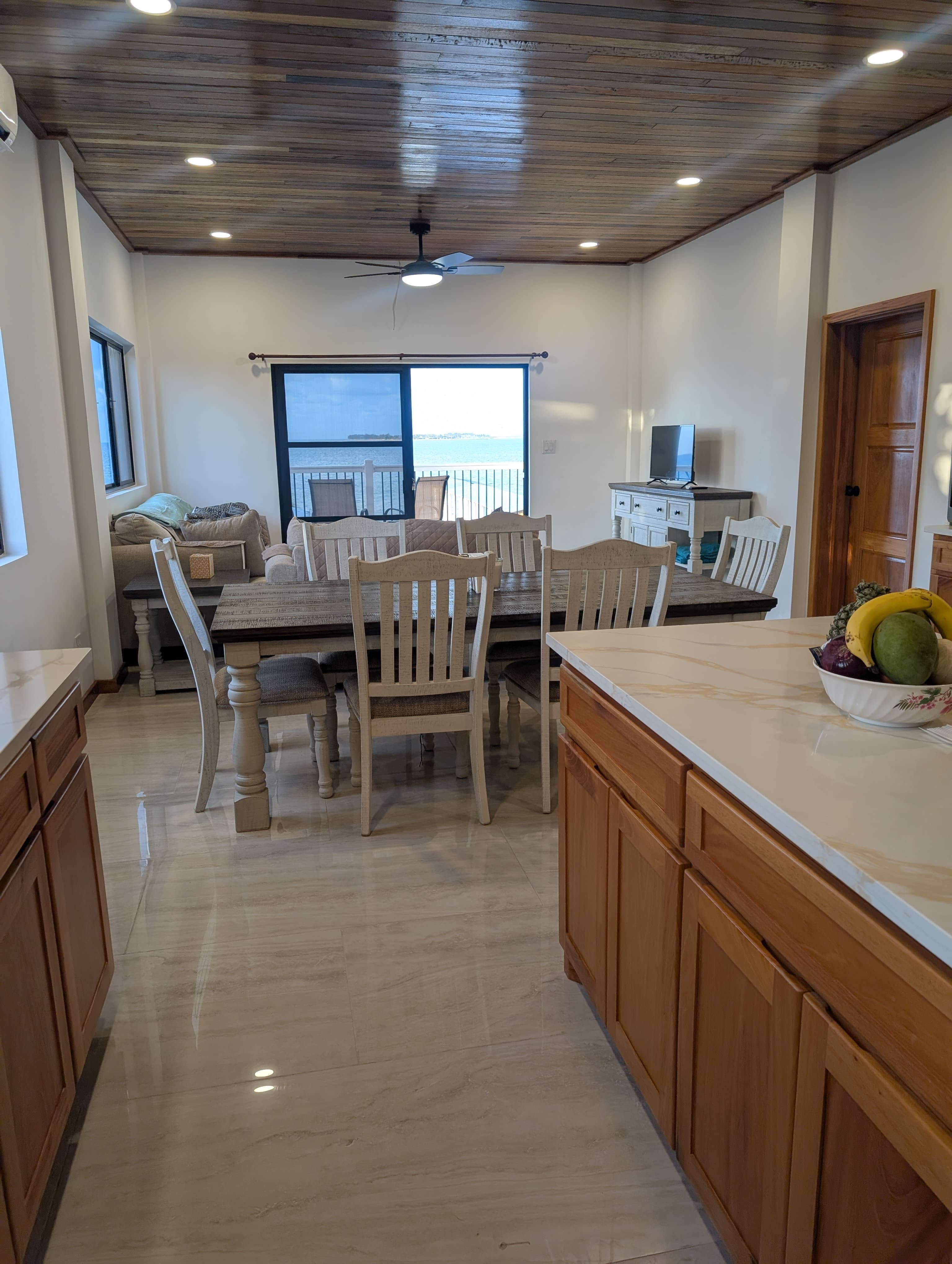 The views are stunning! The Master bedroom as well as the living room have pool and ocean views. You can witness sunrise and sunset from your private rooftop pool and outdoor kitchen. There are 3 bedrooms and 2 baths. One king bed, one queen bed, one bunk bed with a full and twin mattress. Beautiful spacious kitchen. Drinking water provided as well as initial instant coffee/sugar and some spices.